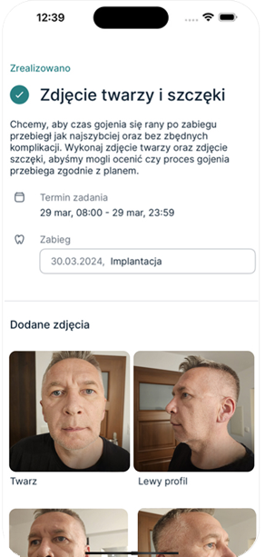 Pacjent Implantologiczny,, Dzięki aplikacji pamiętałem o stosowaniu wszystkich lekarstw, po wystąpieniu obrzęku dostałem dokładne informacje o tym co robić dalej, bez konieczności dodatkowej wizyty "