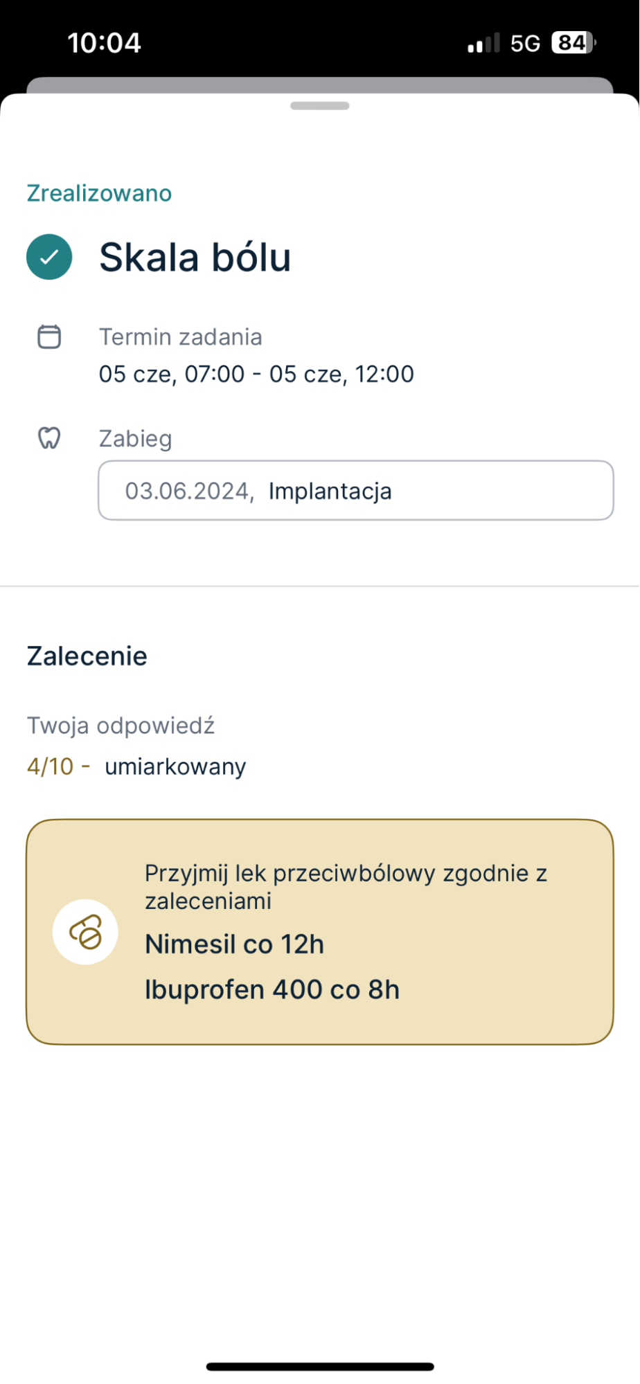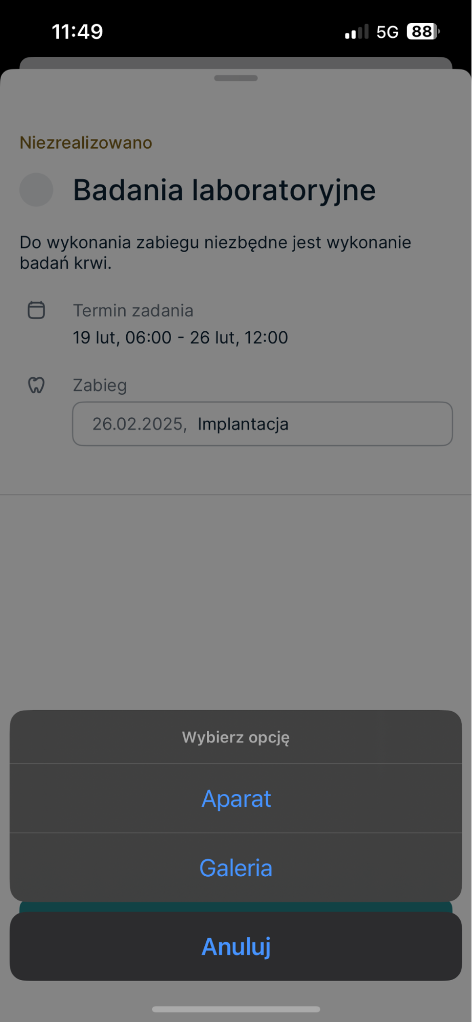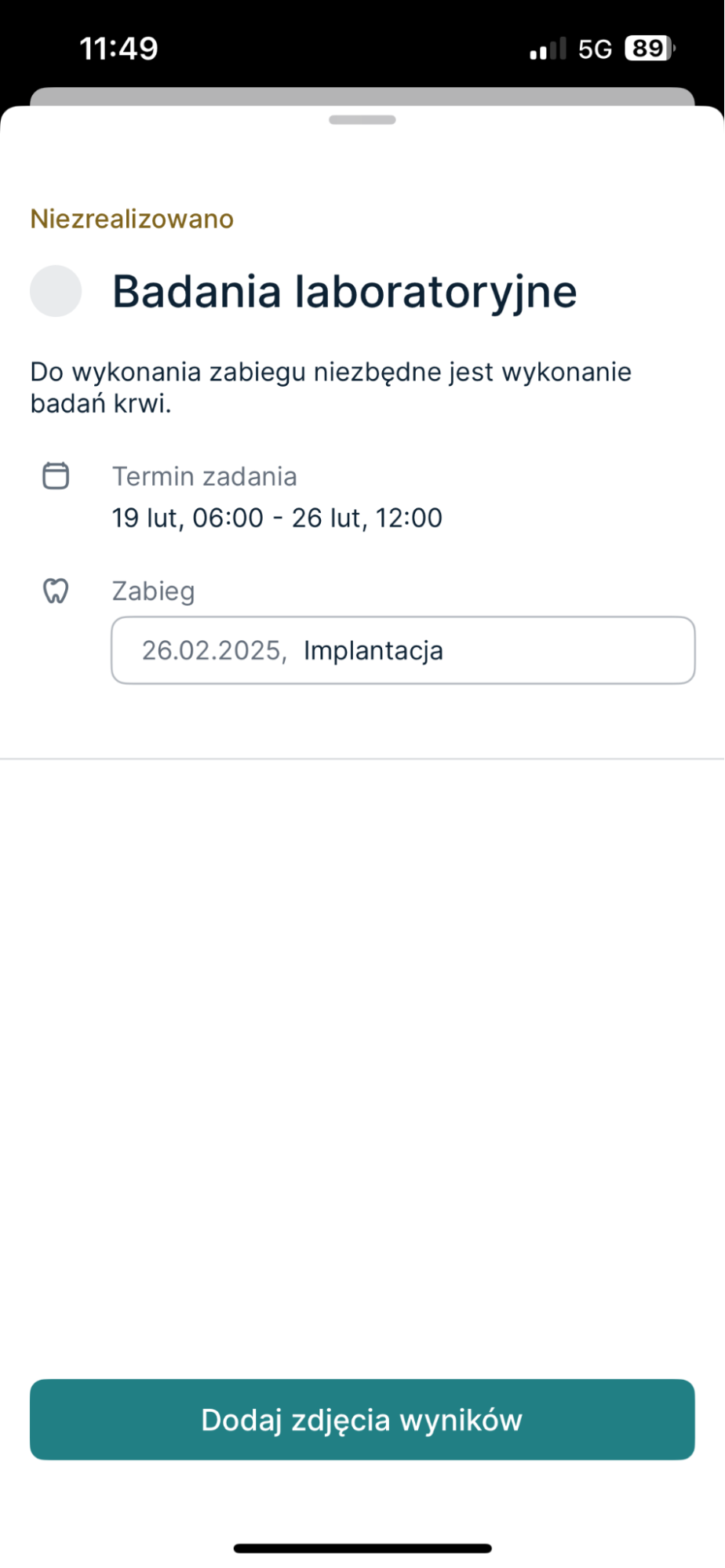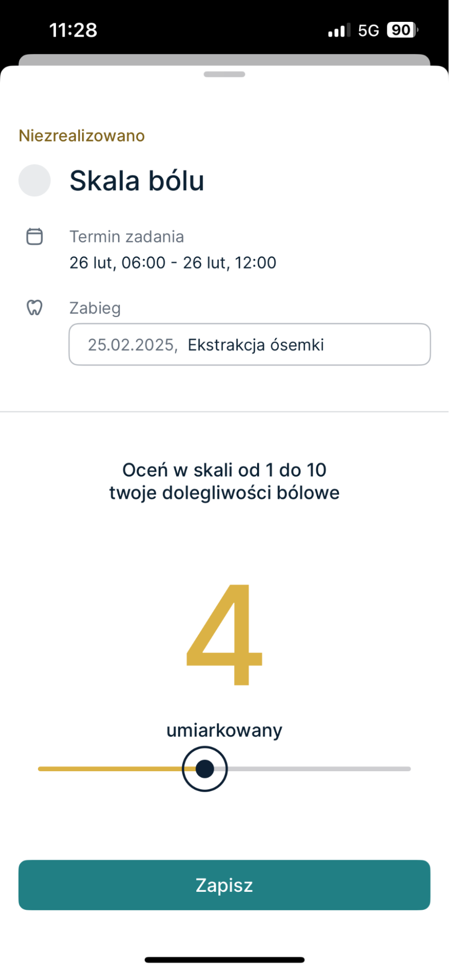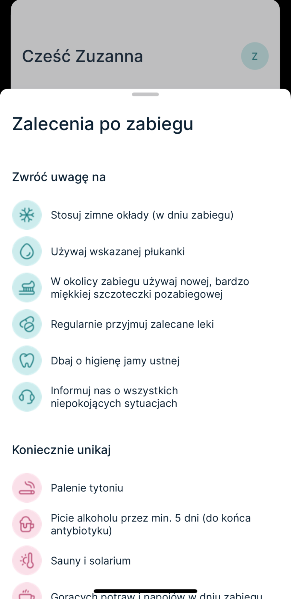 - Zdjęcia kontrolne – Możliwość przesyłania zdjęć wewnątrz- i zewnątrzustnych, które pomogą lekarzowi śledzić postęp gojenia i szybko reagować w razie potrzeby.